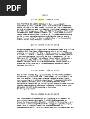 1 The Province Of North Cotabato Vs Grp G R No 183591 October 14 2008 Case Or Controversy Clause Standing Law